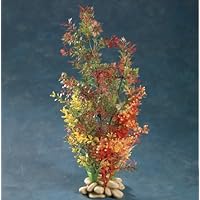 This plastic plant is exactly as advertised. Very colorful, solid and has a very heavy rock like base. Would not have to bury it in the substrate if for some reason you did not want to. Takes a little while to get it, because the seller orders directly from Hong Kong. Very nice product. I have a 36 gallon tank. Fits nicely.
