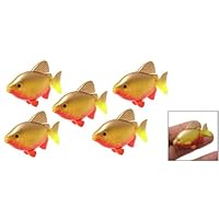 Put one in the tank to see how it worked. It stayed at the surface with its dorsal fin sticking out. My Betta checked it out from every possible angle as soon as it was in the water and went back to his favorite spot laughing all the way. That was good I did not think my Betta could have taken a chunk out of it but did not think one would go down well. It says to have some current or moving water. I do and it soon went to the filter which creates a good current and just floated there. The current went just below so it stayed right there at the filter as if glued. All the other four in the bag were repeats other than my Betta took one glance and just shook his head at them. It looked nice to me (not my Betta) and if it floated about the ten gallon tank at all would have been a nice addition. Stuck in one place it has no attraction and would be just one more thing to clean. Had it sank to around mid level of the tank I think I would have been much pleased with its performance.